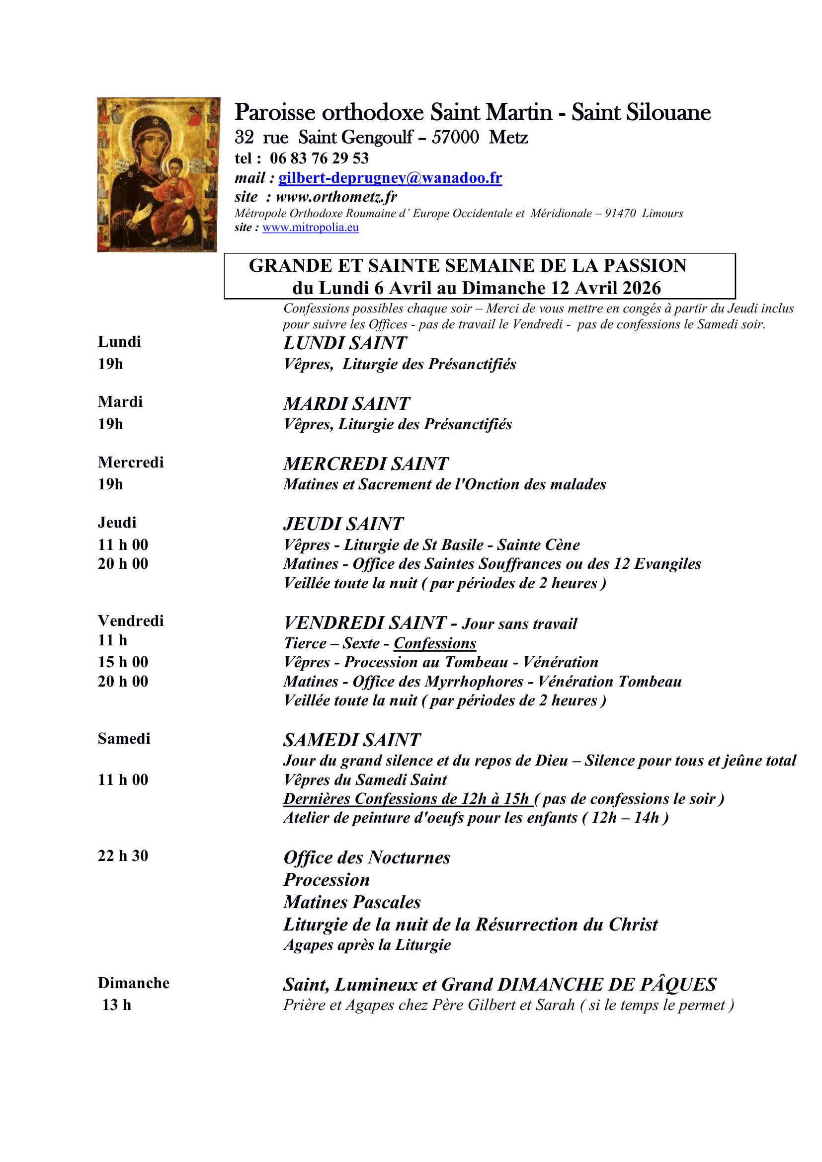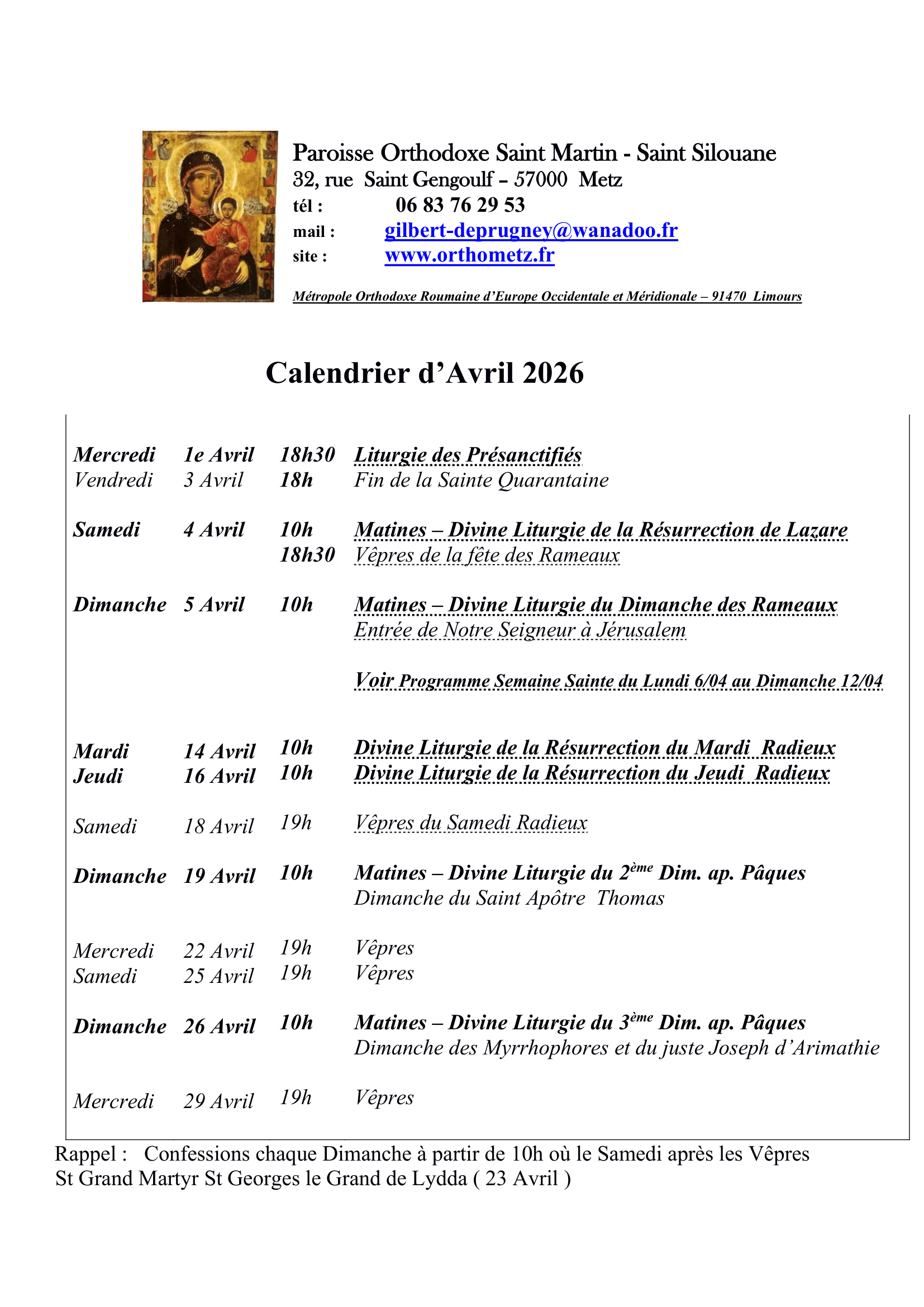 La Paroisse Orthodoxe St Martin-St Silouane située 32 rue St Gengoulf à Metz existe depuis 1990. Elle est composée d’orthodoxes de différentes origines (Français, Roumains, Russes, Géorgiens, Moldaves, Libanais, …).