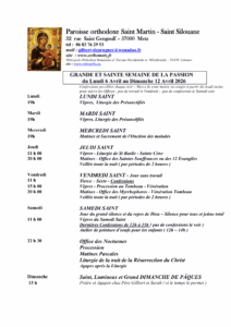 Calendrier de le Semaine Sainte et du mois